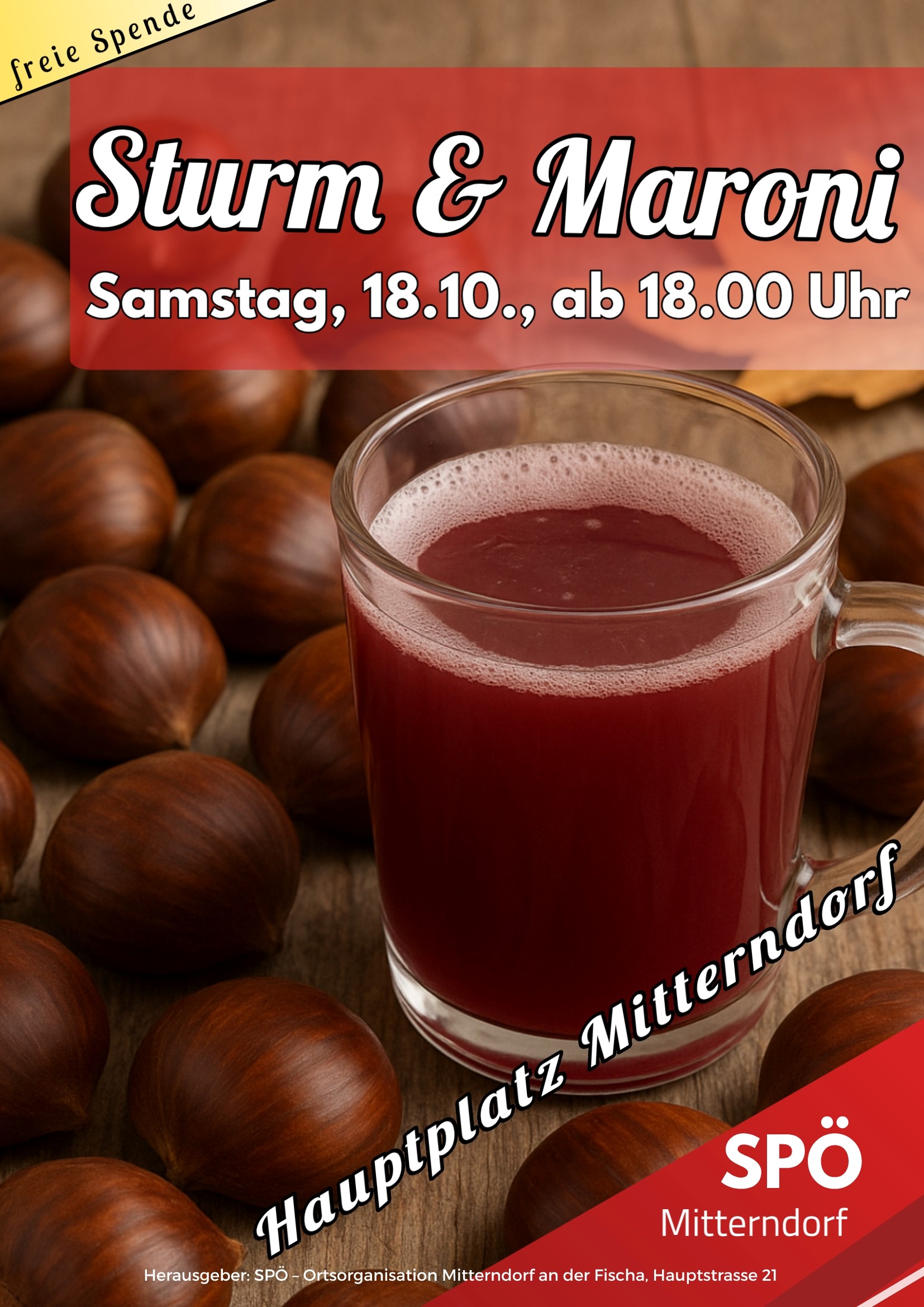 Es ist wieder Sturm und Maroni Zeit – kommt vorbei, wir freuen uns auf einen gemütlichen Abend mit euch!